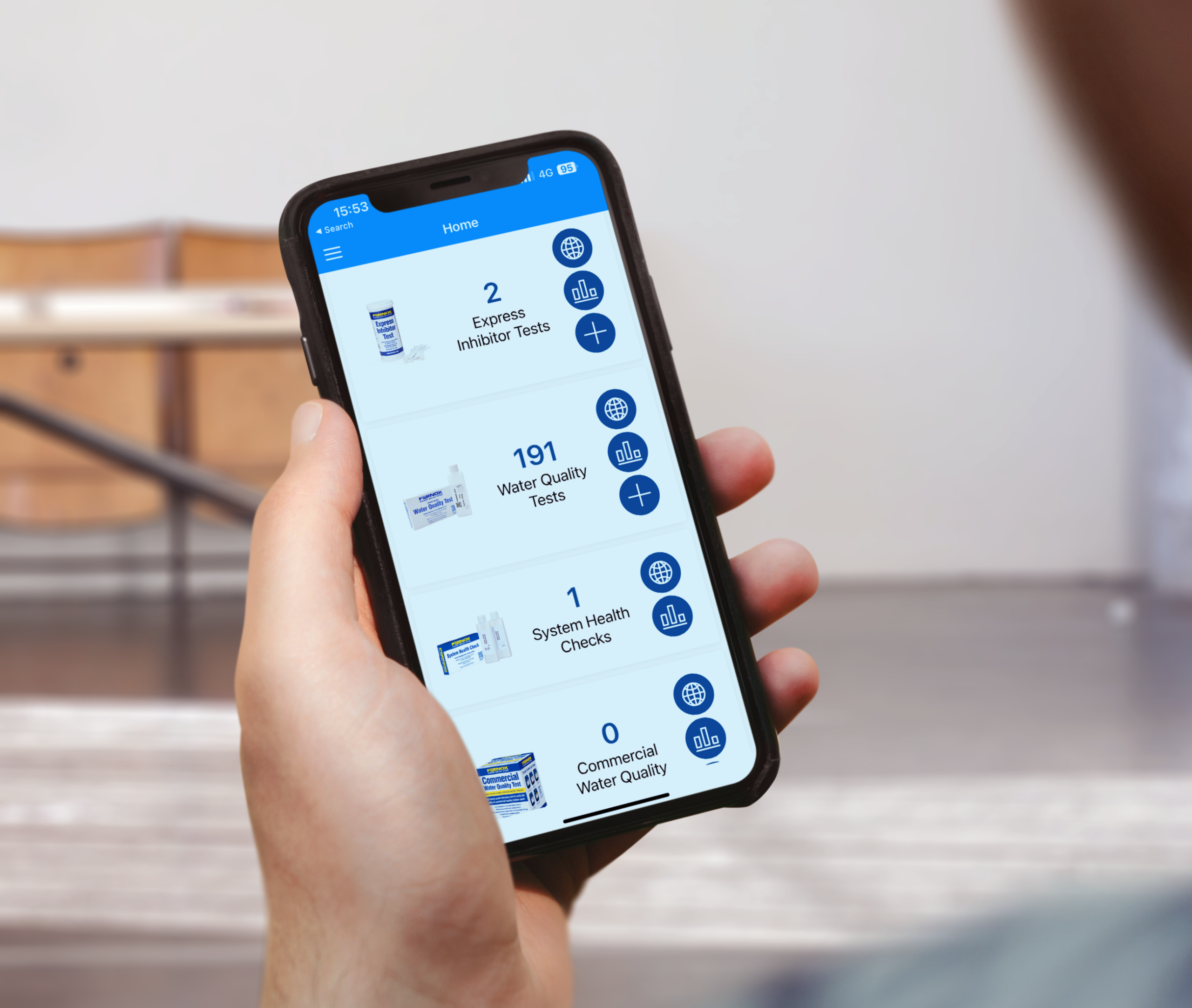 When used in conjunction with the Fernox Water Test App, which is free to download from the Apple App Store or Google Play Store, this single usage, on-site heating system test can be saved within the App and a lab-style report certificate is available to download. A pass or a fail is confirmed based on the colour of the test strips compared against the colour chart on the pot. In the event of fail result, corrective action can be taken immediately by simply adding more inhibitor and retesting to receive the pass certificate – saves time as there is no need for return visits to site.