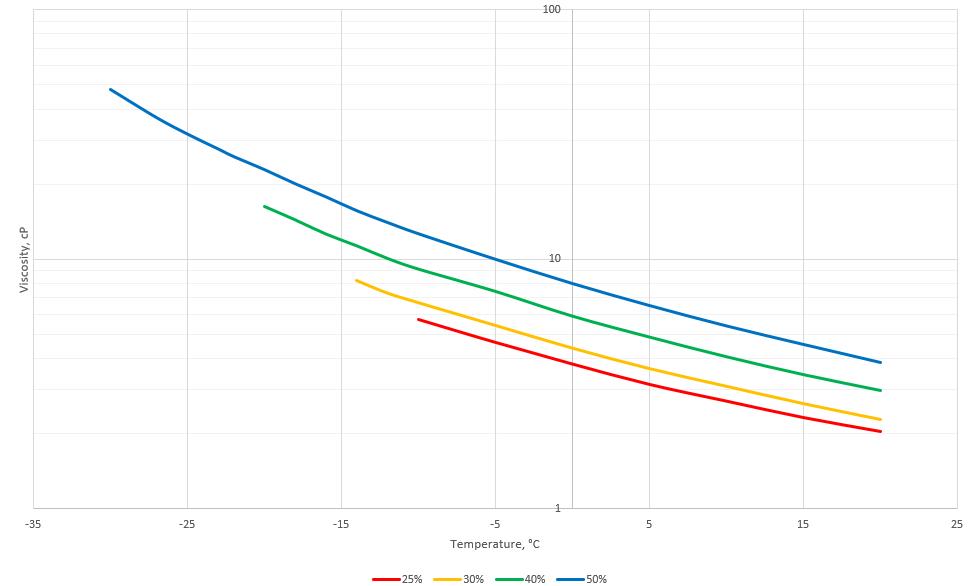 Dilute before use using mains water. Deionised water (demineralised) or artificially softened water is also suitable, if preferred. To ensure adequate corrosion protection, the minimum ‘in-use’ concentration of the product is 25%. Upon dilution Fernox HP-EG will provide frost protection according to the table below.