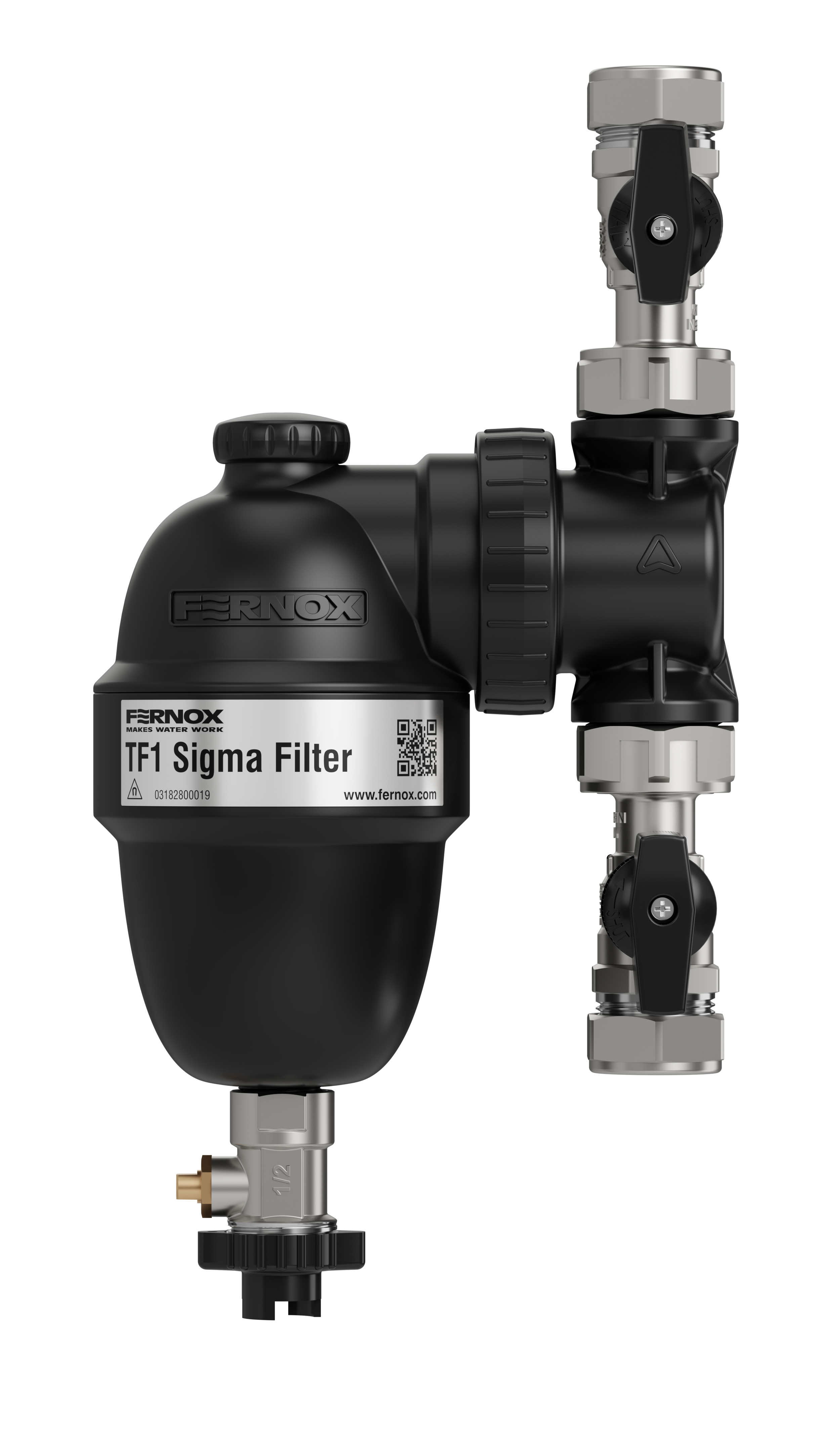 The TF1 Sigma Filter is designed to protect the boiler from the damaging effects of circulating corrosion debris, which has collected in the system as a result of a chemical reaction when water comes into contact with mixed metals used within a heating and cooling system. Treating the system with a quality inhibitor product from the Fernox Protector range will prevent the formation of sludge and scale long term in accordance with regulations and best practice.